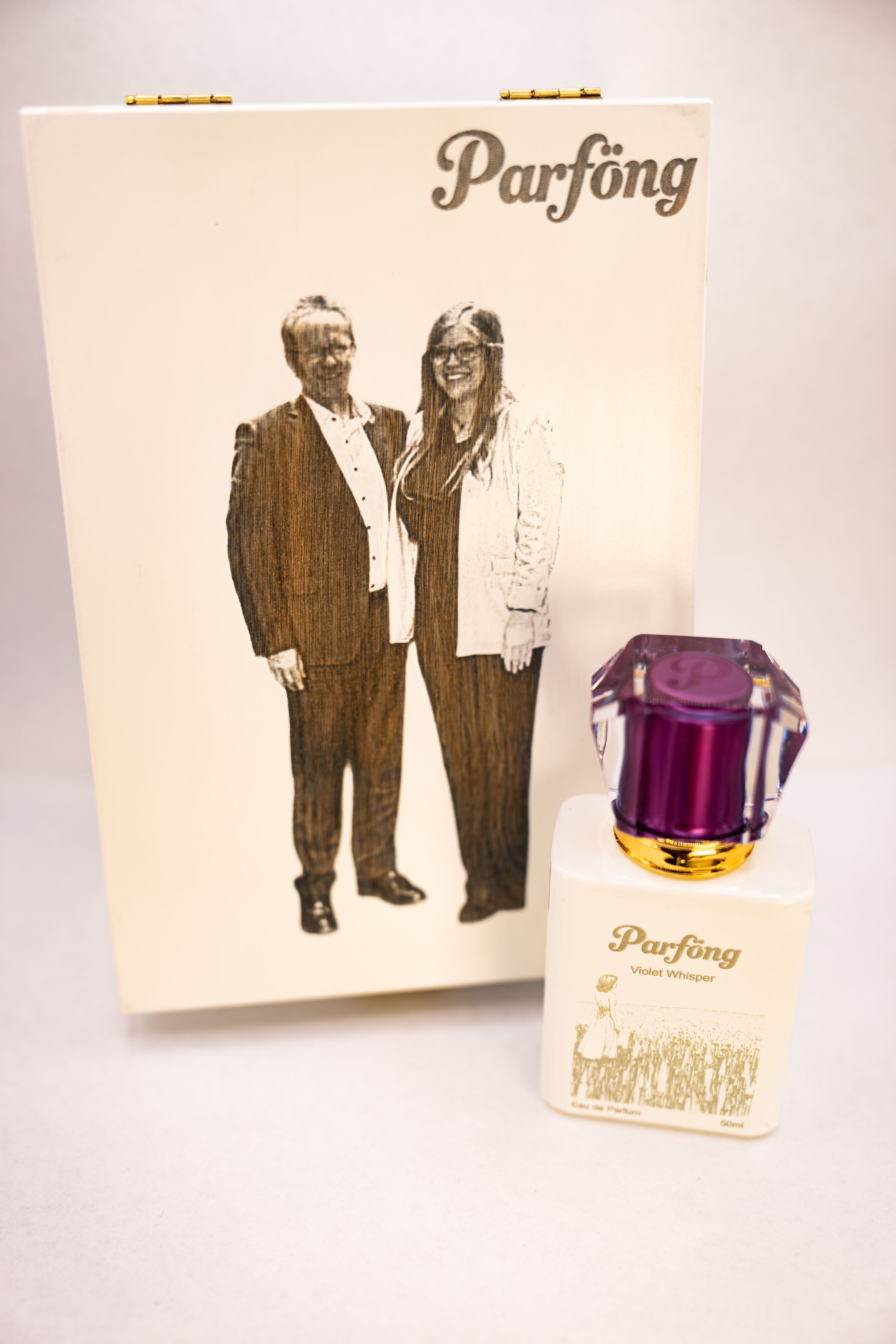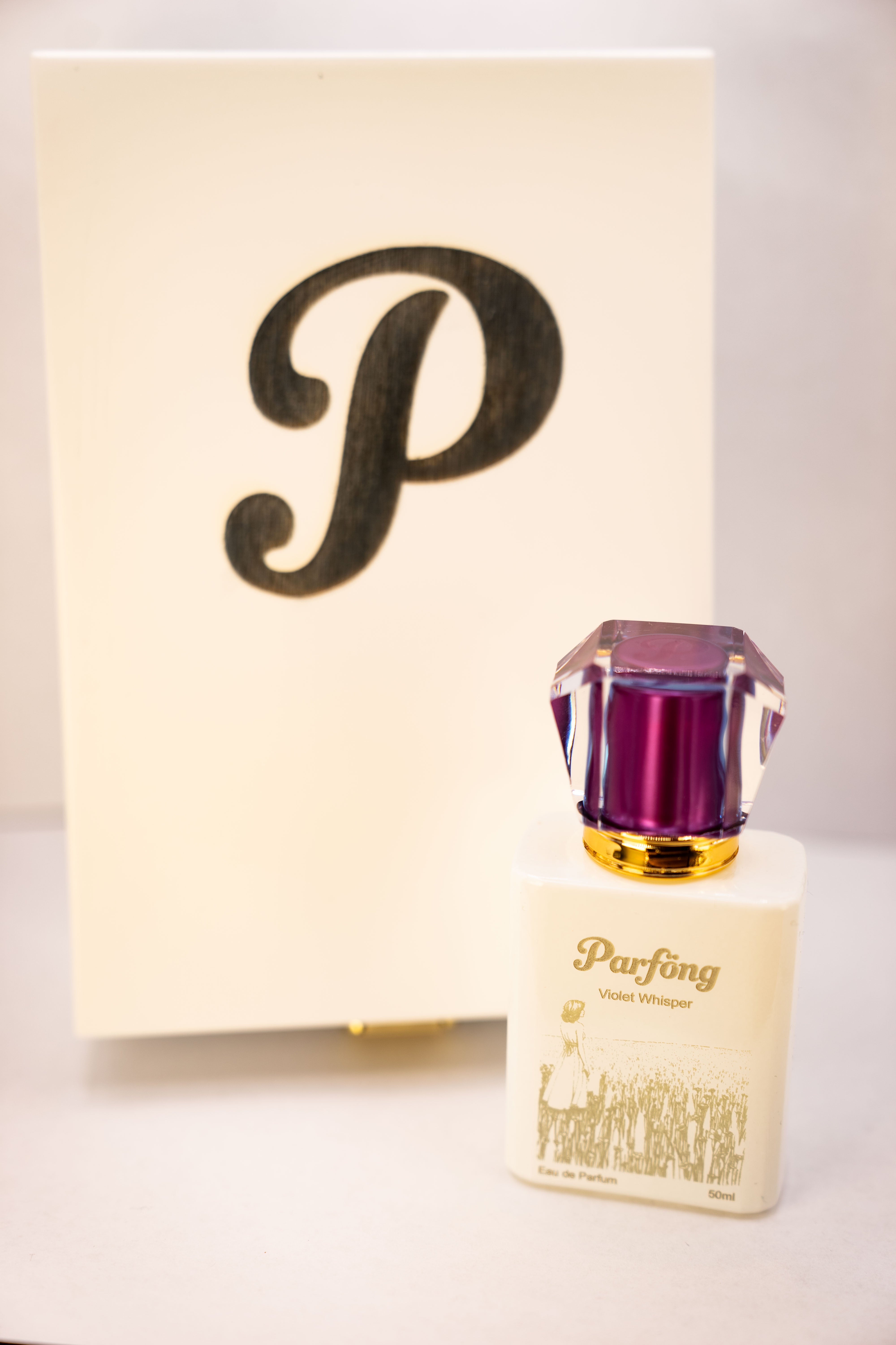 Ein nicht personalisiertes Parfum wird in der weißen Holzbox geliefert, in die ein P graviert ist, wie im dritten Produktbild zu sehen.